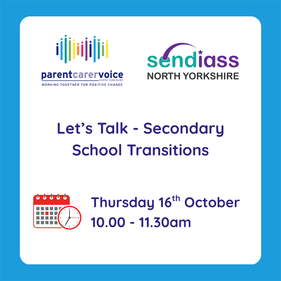 SENDIASS (Special Educational Needs and Disabilities Information Advice and Support Service) are leading a Transitions to Secondary School webinar to provide informed support when choosing a secondary school for their child.